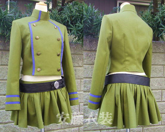 | ■縫製は職業用ミシンとロックミシンを使用し丁寧に縫っています。 ■ボディが若干小さく、ボディの胴も着丈が短いため 、実際に着用頂いた際には、お腹の見える幅がもう少し広くなるように、 腰位置低めでスカートを履いて丁度良いくらいに着て頂けます。 ■襟・身頃見返しはしっかりと接着芯を貼り、肩パットも付けており、 形を綺麗に保つようきちんと製作してあります。 ■スカートは円形裁断です。 ギャザーを寄せた根元部分だけをアイロンプレスして、 イラストのように不揃いな皺のイメージを作りました。 ■眼帯は前側は合皮紐、見えない後ろ部分のみをゴムにしていますので、 簡単に着脱して頂けます。 ■ウエストベルトはマジックテープ止めです。 ■袖は、内袖と外袖の2枚はぎで作っております。 襟、身頃見返し、袖口のえんじ色は、見える部分のみで総裏地ではありません。 ■画像ではカーキの色合いが綺麗に写りませんでしたので、 コミックス9巻背表紙のカーキ色に一番近い色味の布と参考にして下さい。 ■見本画像1段目と2段目に使用しているボタンが廃盤になってしまったため、 画像3段目の新しいボタンに変更となりました。 ■別途ブーツ用ベルトご用意できます。 キャスト製ドクロ付 ブーツ用ベルト 左右2組セット ずり落ちないようにゴムの輪で止まるように製作しています。 見本画像のようなタイプのブーツにピッタリのサイズです。 スリムブーツをご利用の方には、ご自身でサイズを合わせられるように、 マジックテープをつけない状態でお届けできます。 ベルトとドクロパーツのみで、見本のブーツはセットに含まれません。 ■上着とスカート別サイズの組み合わせも可能です。 ■スカートは腰履きしますのでHサイズに合わせてお選び下さい。 ■Mサイズ 袖丈約57cm ご希望により袖丈調節可能です。 |