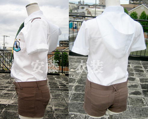 | ■縫製は職業用ミシンとロックミシンを使用し丁寧に縫っています。 ■女性体型ボディのため若干胸がある着用画像になっておりますが、 バストラインは男装用に胸をさらし等でつぶして 着用頂く用に合わせて製作しておりますので、 実際に着用頂いた際に、 より男装に適したラインで着用頂けると思います。 ■ブラウスの形は後ろを長く、腰ボタン部分はイラストのようなデザインになるよう、 工夫して製作しています。 ■ブラウスの形は後ろを長くして製作していますので、かがんでも肌が出にくくなっています。 ■アルト・ミハエル用のシャツに比べて、袖丈を短く、身幅を細くして タイトなシルエットになるように製作してあります。 ■襟にはしっかりと接着芯を貼り、形を綺麗に保つようきちんと製作してあります。 ■襟元に飾りパーツをつけています。 ■イラストに近いバランスになるようパンツは股上の浅い腰履きの形です。 同様にベルトループは前を斜めにつけ後ろは交差するデザインで製作しています。 前ポケットはついていません。 ■ネクタイは細身に製作して、黄色のラインはバイアステープを縫い付けています。 ルカ用のネクタイは、イラスト通り短めに製作しています。 色重視での素材選びをしましたので、カツラギの裏面を使用しています。 ■胸ポケットの星は、星型ボタンを金色にラッカーで塗装しています。 お洗濯の際には必ず取り外してください。 ■ブラウスのみのご注文も可能です。 ■ワッペンはフェルトにアイロンプリントをして厚みを出しています。 |