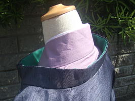 | 狩衣(紺) 着物(うす紫) 長襦袢パーツ(白の襟) 帯(水色) 袴(白) |