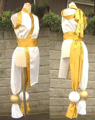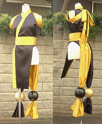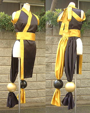 | ■縫製は職業用ミシンとロックミシンを使用し丁寧に縫っています。 ■本体は、イベントの露出規制もありますので、 胸元、わき、ともに隠れている形に作りました。 ブラジャーもちゃんと付けられます。 写真を撮ってもかたの紐やわきから見えないです。 ■肩紐リボンは背中で結んで下さい。 ■ショーツは、レオタード素材を使用して製作しております。 ストッキングをはいた上からショーツをはいてください。 ■しっぽの玉の大きさもイラストくらいの存在感のある大きな物で、 色はカラースプレーで塗装しました。 ■手甲はキルト芯を挟んで厚みを出しています。 ■舞の衣装は身体にフィットしていないとおかしいですので、 サイズ調節は衣装到着後に体に合わせて帯の部分と手甲の手首の部分を マジックテープ、カギホック、安全ピンなどで付けて頂くようお願いしております。 衣装はマジックテープなど留め具を付けない状態でお送りしています。 |