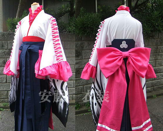 | ■縫製は職業用ミシンとロックミシンを使用し丁寧に縫っています。 ■白い着物ですので、厚めの生地で 透けないように仕立てています。 縫製作業はミシン使用ですが正規の着物の形で製作していますので、 沢山の布量と丁寧に手間をかけました衣装になりその分綺麗な仕上がりになっております。 ■袖の柄は左右違うデザインを、設定を見ながら手描きでペイントしています。 手描きですので、毎回若干の違いは生じます。あらかじめご了承下さい。 アイロン・洗濯は可能な素材を使用していますが、あて布をしたりなど、お手入れ時の注意は必要です。 ■ピンクのフリル付 赤襟は襟パーツのみです。 白着物にホックで留める様に作りました。 ■ボディには下半身がありませんので、 着用時の様には袴の裾が広がっておりません。 ■袴は、 ・スカートタイプの袴 ・ズボン型の袴(+5000円) ご希望のタイプをご連絡下さい。 本来のイラストデザインはズボン型の袴ですが、 お値段とお手入れの簡単さの面で、スカートタイプもご用意しました。 ■袴の腰板の紋柄はアイロンプリントです。 アイロンは専用のあて紙の上からかけてください。 ■袖・袴には約90個のハトメを使用して、編上げのデザインを再現しています。 ■ピンクフリルの端は巻きロック仕上げです。 ■帯揚げにはふっくらした厚みを出すために、薄めの綿布(キルト芯)を入れています。 ■着物の着方・保存方法・御手入れの仕方は 注意点を書きまして同封させて頂きます。 ■袴のアイロン等のお手入れが大変ですので、お洗濯はクリーニングをオススメ致します。 ■ほぼ同様の形で色違いデザイン等の着物と袴は、 多少の追加料金でご注文製作可能です。 ご希望の方は資料画像をご用意の上で製作ご相談下さい。 |
