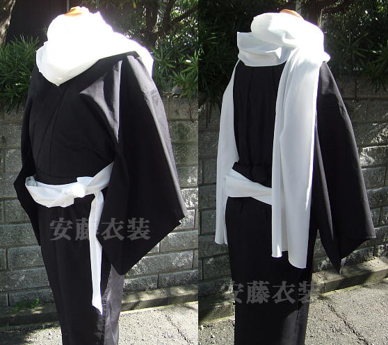 | 黒着物 白襟 黒帯 白帯 白マフラー |