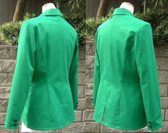 | ■縫製は職業用ミシンとロックミシンを使用し丁寧に縫っています。 ■ 制服上着のみで、ブラウス・ネクタイはセットに含まれませんのでご注意下さい。 上着はボタンでの着脱ですので、衣装を着るのも簡単です。 女性体型ボディのため若干胸がある着用画像になっておりますが、 バストラインは男装用に胸をさらし等でつぶして 着用頂く用に合わせて製作しておりますので、実際に着用頂いた際に、 より男装に適したラインで着用頂けると思います。 襟・身頃見返しはしっかりと接着芯を使用、肩パットも付けてありますので、 ブレザーの形を綺麗に保つよう配慮しております。 腰のポケットは飾りのみでポケットの使用はできません。 |