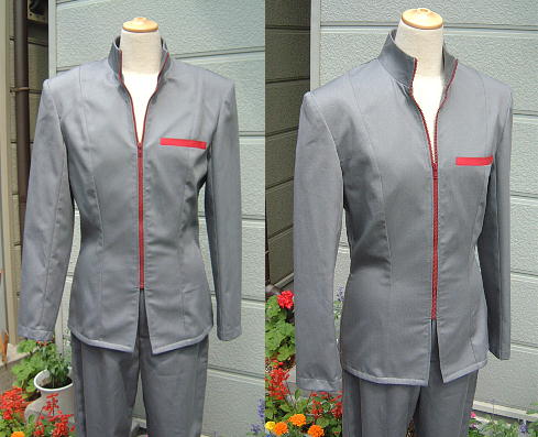 | ■縫製は職業用ミシンとロックミシンを使用し丁寧に縫っています。 ■ 上着はファスナーでの着脱ですので、衣装を着るのも簡単です。 原作漫画イラストのとうりに肩から胸にかけて縫い合わせしてあります。 ウエストを細身にシェイプしたラインで作りましたので、 着用時にすっきりとしたシルエットで見目良く写ると思います。 女性体型ボディのため若干胸がある着用画像になっておりますが、 バストラインは男装用に胸をさらし等でつぶして着用頂く用に合わせて製作しておりますので、 実際に着用頂いた際に、より男装に適したラインで着用頂けると思います。 襟・身頃見返しはしっかりと接着芯を貼り、肩パットも付けており、 ブレザーの形を綺麗に保つようきちんと製作してあります。 袖は、内袖と外袖の2枚はぎで作っております。 胸のえんじラインは飾りのみでポケットの使用はできません。 上着のみになります。 ズボンはセットに含まれませんのでご注意下さい。 ズボンの追加製作は可能です。 |