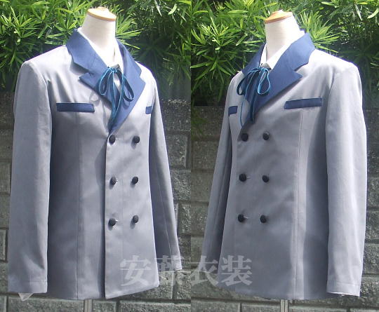 | ■縫製は職業用ミシンとロックミシンを使用し丁寧に縫っています。 ■上着はボタンでの着脱ですので、衣装を着るのも簡単です。 女性体型ボディのため若干胸がある着用画像になっておりますが、 バストラインは男装用に胸をさらし等でつぶして 着用頂く用に合わせて製作しておりますので、 実際に着用頂いた際に、 より男装に適したラインで着用頂けると思います。 ■イラストデザインのように、前中心に切り替えラインがあるように製作しています。 ■襟・身頃見返しはしっかりと接着芯を使用、肩パットも付けてありますので、 ブレザーの形を綺麗に保つよう配慮しております。 ■袖は、内袖と外袖の2枚はぎで作っております。 ■胸ポケットは飾りのみでポケットの使用はできません。 ■ボタンはくるみボタンです。 ■リボンは両面ベルベットリボンをセットにお付けしています。着用時に蝶々結びをしてご着用下さい。 ■キャラクターの学年により制服のカラーが違います。ご希望の学年をご連絡下さい。 1年生 えんじ色 2年生 紺色 3年生 緑色 ■M・MLサイズ 着丈約65cm 袖丈約56cm Lサイズ 着丈約70cm 袖丈約60cm ご希望により袖丈調節可能です。 ■ブラウスはセットに含まれませんのでご注意下さい。 ■チェックのズボンは適した色合いの布が見つけられませんでしたので、残念ながら製作ができませんでした。 |