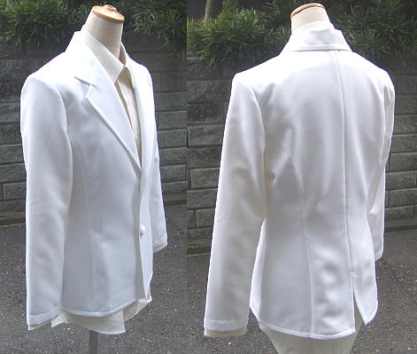 | ■縫製は職業用ミシンとロックミシンを使用し丁寧に縫っています。 ■上着はボタンでの着脱ですので、衣装を着るのも簡単です。 女性体型ボディのため若干胸がある着用画像になっておりますが、 バストラインは男装用に胸をさらし等でつぶして 着用頂く用に合わせて製作しておりますので、 実際に着用頂いた際に、 より男装に適したラインで着用頂けると思います。 ■襟・身頃見返しはしっかりと接着芯を使用、肩パットも付けてありますので、 ジャケットの形を綺麗に保つよう配慮しております。 ■男装用のジャケットとして女性サイズで製作致しました。色々なキャラの白スーツバージョンとしてご着用頂けます。 ■M・MLサイズ 着丈約64cm 袖丈約56cm Lサイズ 袖丈約60cm ご希望により袖丈調節可能です。 ■ブラウスはセットに含まれませんのでご注意下さい。 ■同素材でズボンの製作可能です。 |